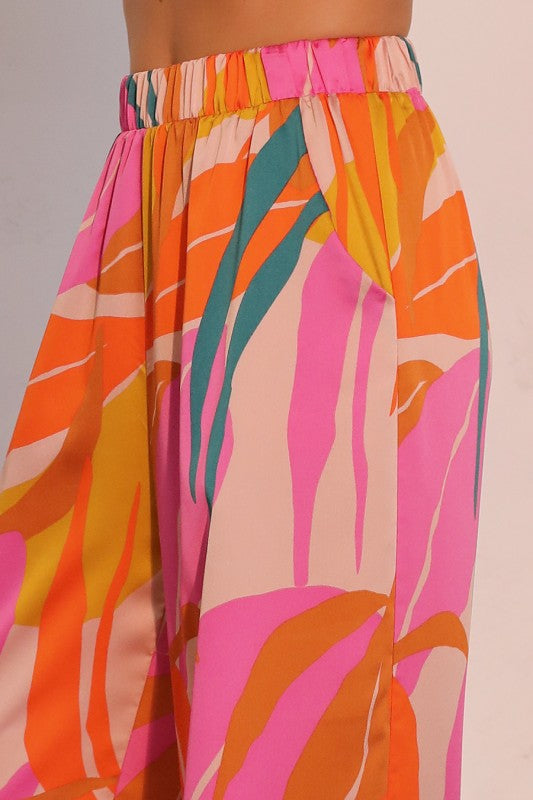 The Isla Tropical Satin Pocket Pants capture breezy sophistication with their silky drape, playful tropical print, and easy pocket detail. Ideal for travel, weekends, or sunny escapes, they balance style with comfort in every step.
