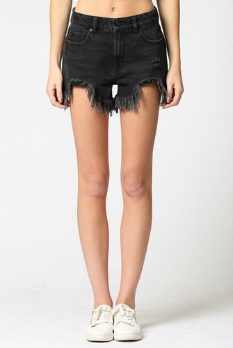 Sofie Black Heavy Frayed Hem High Rise Mom Shorts