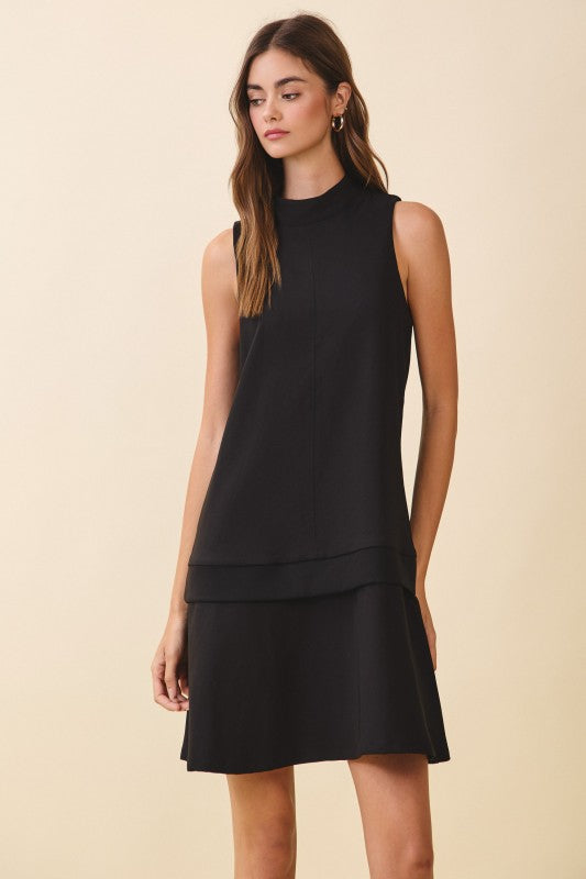 Designed with a clean front seam and a layered hem detail that adds subtle structure and movement. Finished with a concealed back zipper closure.