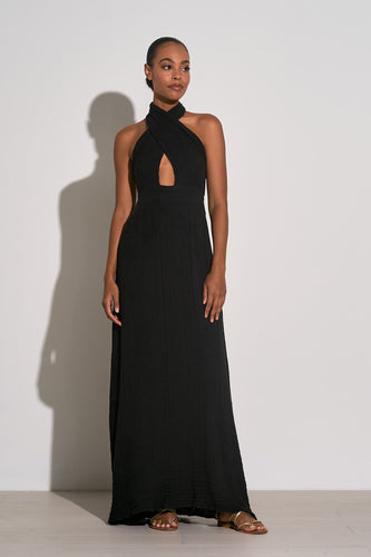 Elan Criss Cross Halter Maxi Dress