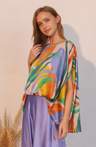 Isla Tropical Satin Boat Neck Caftan Top